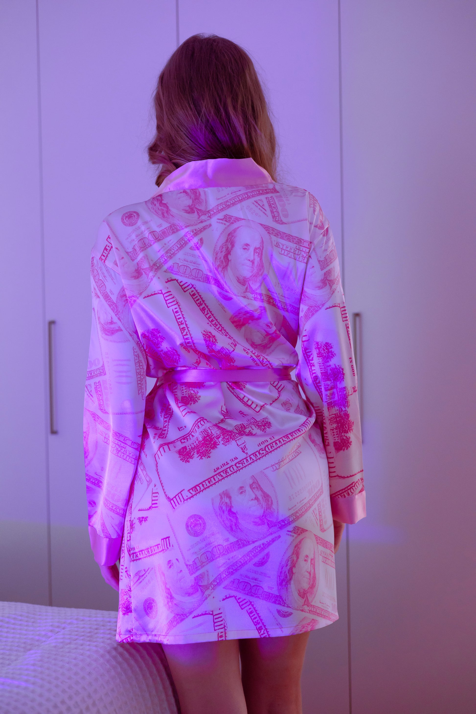 Bundle has: Rich Vibes Robe + Locked & Loaded Ebook + Pink & Black Money Magnet Phone Case.